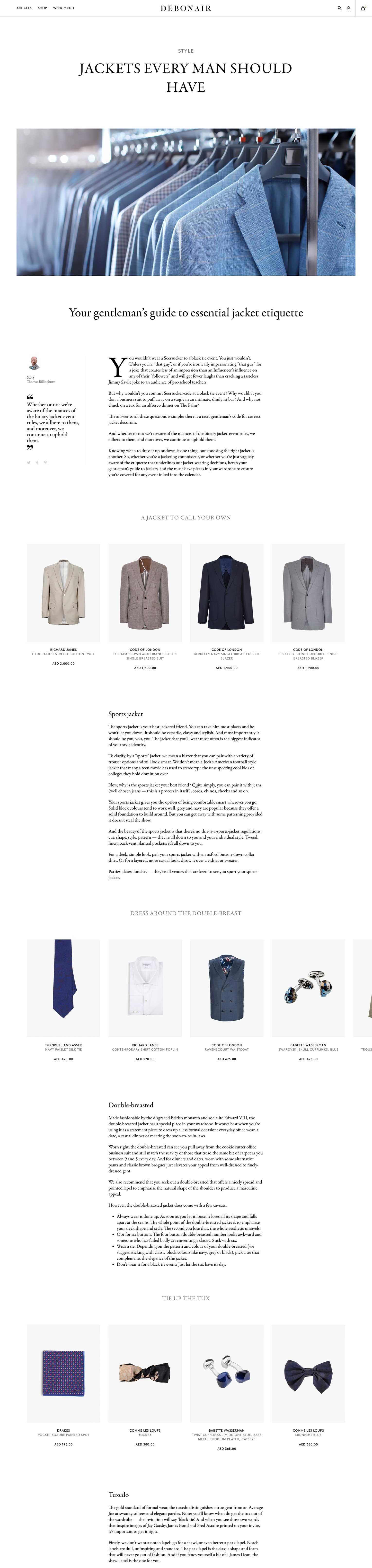 Debonair is a monthly print magazine and online portal dedicated to men’s lifestyles of luxury. Designed for modern, affluent gentlemen, its subjects are style, business, travel, and culture. It’s created by the talented editorial team, Pinpoint Media Group, one of the leading media houses on the Middle East. In addition to top-notch editorial content, the online platform features a comprehensive e-commerce store with everything a contemporary man could want.