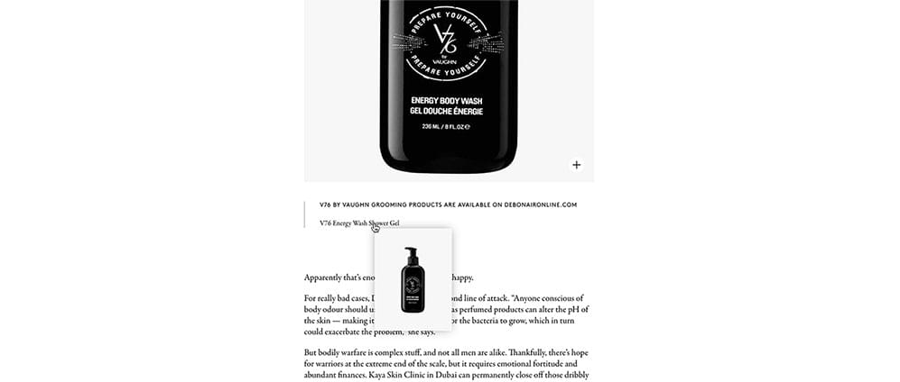 The modular system allows promoting products directly in the body of an article like it’s a part of the content. In this way, we can catch that emotional moment when the consumer reads a story and looks at stylish pictures and then, becomes a buyer.